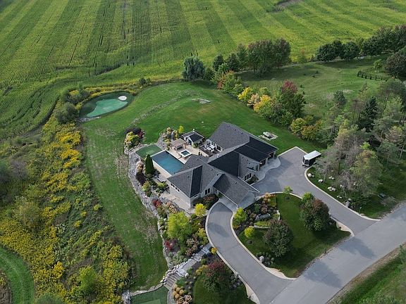 Perched atop a hill with sweeping views, this 4-bedroom home blends luxury and comfort with resort-style amenities. The grand primary retreat includes a lounge, gas fireplace, walk-in closet with laundry, spa-like ensuite, and walkout to the deck, while a junior primary suite features its own walk-in closet and 5-piece ensuite. The open-concept main floor boasts vaulted ceilings, expansive windows, and a newly renovated chefs kitchen with premium Miele appliances and a brand-new Wolf cooktopan ideal space for both everyday living and entertaining. Endless recreation awaits with three golf decks including a putting green and sand trap, a movie theatre, gym, and recreation room. The lower level offers in-law potential with a bedroom, renovated bathroom, and second kitchen. Outdoors, enjoy the infinity-edge pool with spill-over hot tub, upgraded with new tile and a Bluetooth operating system, built in BBQ and pergola. Recent mechanical updates include; a new whole-home generator, boiler, furnace, and more. Ideally located just outside city limits in the west end, seconds from Hwy 7 and close proximity to schools and PRHC, this home offers both convenience and privacy. Homes like this rarely come available, experience the luxury lifestyle at 7 Maplehill.