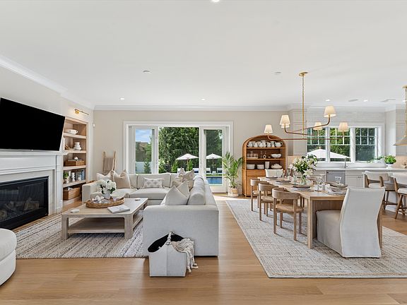 Welcome to 7 Margareta Court, a stunning new construction in the heart of Westhampton Beach. Designed with both luxury and comfort in mind, this 6 bedroom, 6.5 bath home offers an open floor plan with white oak hardwood floors, abundant natural light, and seamless indoor-outdoor living through sliding glass doors that open to a private backyard oasis. The gourmet eat-in kitchen is complete with a Wolf 6-burner range, Sub Zero refrigerator, Bosch dishwasher, center island with seating for 3, and spacious walk-in pantry, while the adjoining dining area seats eight. The first-floor master suite provides a serene escape with dual walk-in closets, a spa-like bath featuring an oversized walk-in shower with built-in bench, and elegant double vanity. Upstairs, four additional ensuite bedrooms-each with wall-mounted smart TVs-offer privacy and comfort for guests. A finished lower level expands the living space with a lounge area, oversized seating, and a sixth bedroom with bath access. Outdoors, enjoy the heated 35' x 16' saltwater pool with bluestone coping and stadium steps, ample lounge seating with umbrellas, and a spacious patio for dining al fresco. With additional luxuries such as high-speed WiFi, central HVAC, a security system, and access to Westhampton Beach village beaches, this home perfectly blends modern amenities with classic Hamptons charm. Ideally located just 1/2 a mile from the Westhampton train station, 1.5 miles to Main Street, and 2.5 miles to Rogers Beach, 7 Margareta Court is the ultimate Hamptons summer rental. Available August 2026.