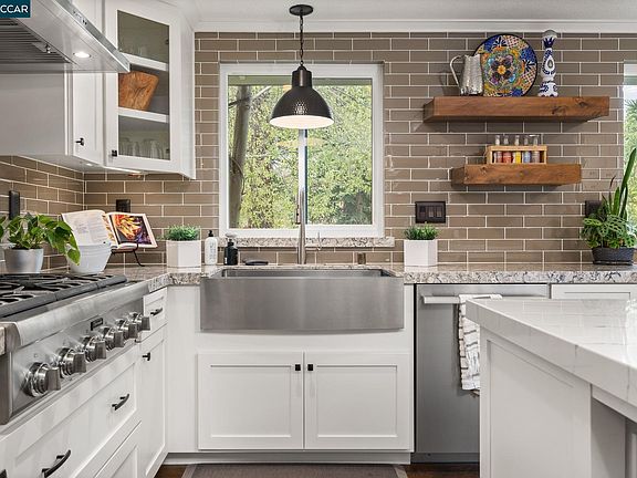 Beautifully updated home in Pleasant Hill’s desirable Victoria Crossings neighborhood where pride of ownership shines. Remodeled featuring rich wood flooring, stunning kitchen with custom cabinetry, premium Thermador appliances including gas cooktop & beverage fridge, Cambria quartz countertops & generous island with seating for 4. Open-concept layout flows seamlessly from kitchen to dining area into spacious living room, enhanced by updated lighting, creating perfect backdrop for everyday living & entertaining. Welcoming living room with soaring vaulted ceilings, stone fireplace & doors that open to deck & backyard oasis. Private primary suite offers serene retreat with walk-in closet, spa-inspired bath with jetted tub, frameless glass shower & private deck access. 2 additional bedrooms share a refreshed hall bath with modern finishes. Step outside to enjoy multiple outdoor living areas, including large deck for dining & lounging, inviting lower patio & above-ground pool for summer fun. String lights & lush greenery create a festive, secluded backyard Laundry room with storage, 2-car garage, upgraded windows, newer deck & fencing. Located near parks, trails, shopping, DVC & served by top-rated schools.