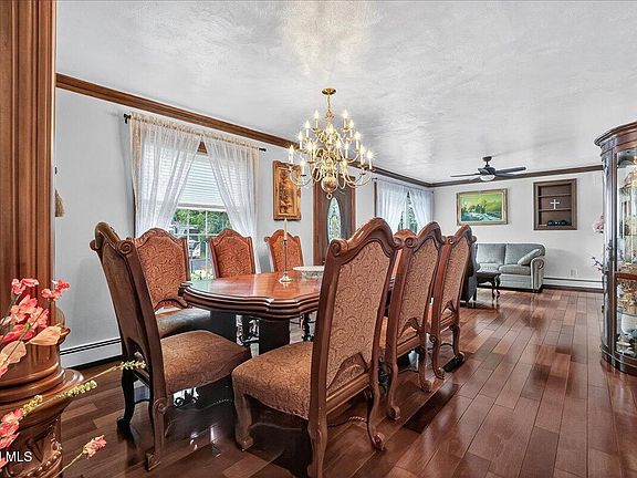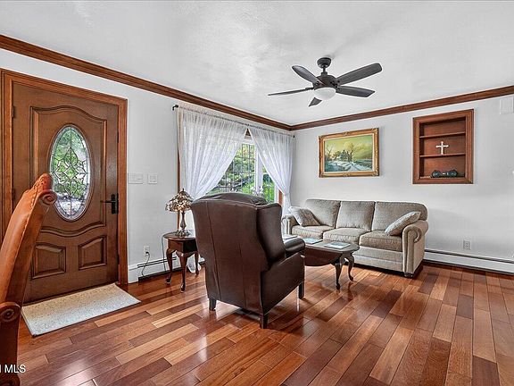 Meticulously maintained split ranch on a beautifully landscaped corner lot! This home features so many updates and upgrades- brazilian cherry hardwood floors, quartz countertops, stainless steel appliances, and ceiling-height cherry oak cabinets. Offering 3 bedrooms and 2.5 baths, the spacious primary suite boasts vaulted ceilings, skylights, a spacious walk-in closet, and a tiled en suite bathroom. The partially finished basement includes a wet bar, workshop, and half bath/laundry area. Also revel in and enjoy the museum-like 2-car garage with epoxy floors, built-in storage, and a pro like car wash station (negotiable in sale). Ideally located near highways, shops, and restaurants in a peaceful neighborhood setting. Make sure to book your private showing today- this home won't last long!