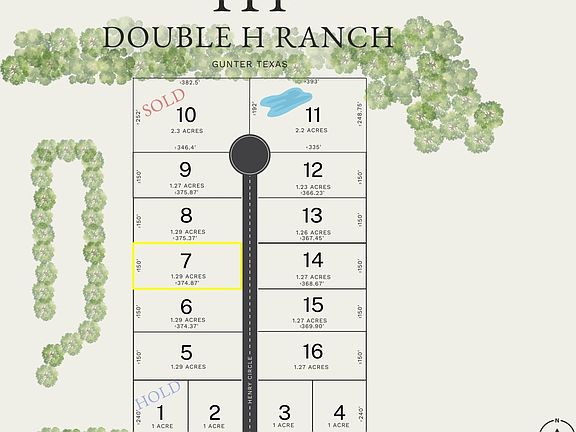 Welcome to Double H Ranch! Gunter's newest custom home neighborhood is coming soon! We are preselling lots now and taking lot holds. All homes to be built with local home builder Scott Post Homes. With just 16 homesites, Double H Ranch will have a single concrete road with a cul-de-sac with no thru traffic. All lots range from 1 to 2+ acres and have wide road frontage making the perfect proportion acre lots! High end black metal fence lining the front yards to be installed, inspired by the outskirts of Nashville, TN. The lots on the left side of the road - where lot 7 is, back up to a tree line. All floor plans and elevations can be totally custom. Estimated build time is 6-8 months. 14 lots remaining! Start building on Lots 1 and 4 now. Lot delivery for lots 2, 3, 5-16 post road completion. Taking lot holds on all lots now. Deed restrictions for quality and value of homes. Double H Ranch is the kind of place where neighbors wave from the porch, a place where legacy takes root. Our hope is that you and your family will feel just as connected here as we do. Let us help you create something meaningful and a place where you can settle into a home that’s truly special here in Gunter, Texas. As this was our family's previously owned land, we're proud to share this legacy with you! Model home located on Pike Rd in Gunter around the corner from Double H Ranch. SPECIAL LOW INTEREST RATE JUST LOWERED to 5.5% on our OTC loan program for our builds! Reach out with any questions.