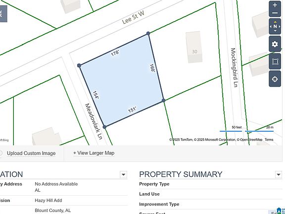Flat wooded Building lot on the corner of Lee and Meadowlark Lane. Just a few blocks from Downtown Blountsville. 2 adjacent lots available.
