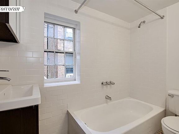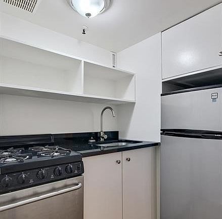 This charming studio is located in the rear building overlooking tree-tops into the center open courtyard and is pin drop quiet. Laden with original details such as decorative brick fireplace, and wide plank knotty pine floors. The kitchen is small but efficient and there is a window in the bathroom. Bike storage premise. Nearby major transportation including the A,C,E,F,B,D,N,R and 1 train. Pets and guarantors accepted.