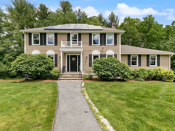 Set on a peaceful cul-de-sac near the Carlisle line, this hip-roof Garrison has been lovingly maintained and thoughtfully updated for move-in ease. Enjoy luxury plank flooring throughout the first floor and a skylighted great room with recessed lighting. The renovated kitchen (2022) features a center island, stainless appliances, and opens to a formal dining room with wainscoting. The first floor also offers a versatile living space with built-in office, laundry, full bath, and private deck. Upstairs, find four spacious bedrooms two with custom closet systems and a primary with walk-in closet and new tiled shower. Enjoy your coffee on the composite deck overlooking a tree-lined yard. Expand into the walk-up attic or walk-out basement. Additional features include a newer gas furnace, generator, solar panels, sprinkler system, new driveway, and invisible fence. Convenient to trails, parks, shopping, and dining—don’t miss this Chelmsford gem! Offer deadline 6/10 at 12PM.