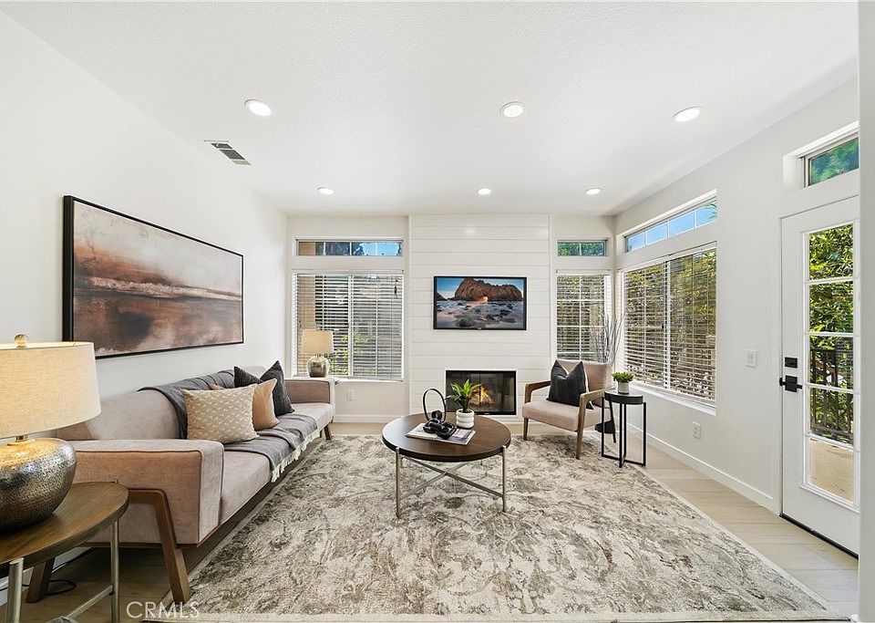 Beautiful, Turn-Key upper-end unit, 2-bedroom, 2 bath condominium in the prestigious St. Tropez community of Aliso Viejo. This Condo has been fully renovated. Upgrades include new electrical throughout, new kitchen, new bathrooms, flooring, paint, and much more. Carriage style is located above garages. Direct garage access leads to an inside formal entryway with coat closet and a stairway to the main floor, where you'll reach the spacious dining and living rooms. The living room features a gas fireplace and Access to the relaxing exterior deck. Kitchen features brand new cabinets, waterfall quartz, a breakfast bar, and brand-new stainless steel appliances. Indoor laundry with washer and dryer included. A direct-access garage includes extensive cabinetry, an extra storage area, and epoxy flooring. The condo comes with 3 parking spots (Garage, driveway, and one dedicated spot). Community pool & spa complete with restrooms and showers, plus a short walk from Argonaut and Pinewood Parks with sprawling grassy fields, basketball courts, baseball fields & tot-lot and nearby walking trails too! Just minutes to the 73-toll road, Aliso Viejo Town Center, shopping, restaurants, resorts, and Laguna Beach!
