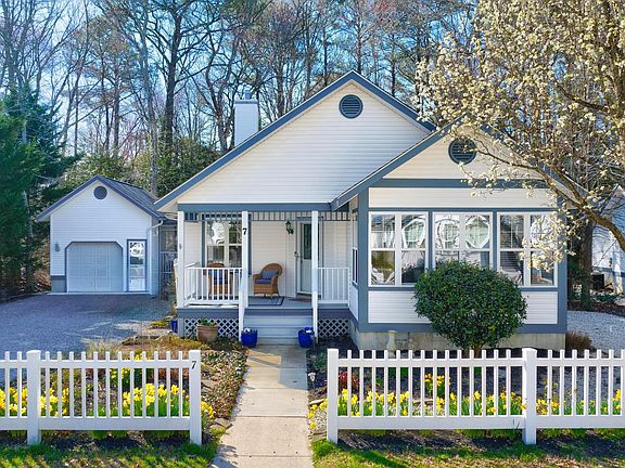 Welcome to unique and charming 7 Morgan's Turn in Savannahs Landing! Beautifully set on one of the largest lots in the community, and backing to a buffer of trees for peace and privacy, this 4 Bedroom home offers just the right combination of living, sleeping and storage spaces. Enjoy one level living with all bedrooms on the main level, a completely renovated kitchen, an addition that lives likes it was part of the original house design, with a sunny second living room/family room, the 4th bedroom and a versatile loft, plus a reconfigured primary bedroom and bath with walk-in large shower, vessel bowl sinks and loads of storage. The sunny white kitchen with granite countertops, enlarged kitchen island, and quality updated stainless steel appliances includes a gas stove make it perfect for the family chef! On top of the tasteful upgrades, this home also features an energy-saving geothermal hvac system, a recent roof replacement (2018), and has been well-maintained throughout. A breezy screened porch/3 season room and rear brick patio give you nice outdoor entertaining spaces, and the oversized 1-car garage with loads of shelving, plus the attached storage/workroom, provide great places for recreational and beach gear, gardening supplies or seasonal decor. Enjoy carefree low-maintenance and low-cost living with no grass to mow, vinyl picket fencing, annual taxes $2001/yr. and HOA of $115/month with a community pool, tennis, sidewalks and street lights. Beach anyone? No worries about the cost and availability of parking in town, this location is just ½ mile to the trolley stop which takes you to downtown Bethany Beach, for the beach, boardwalk, restaurants and shops. Plus you are even closer to restaurants and shops in Ocean View!