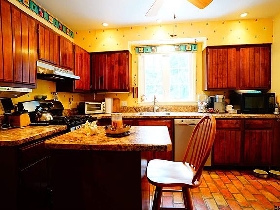 Adorable Cape on a beautiful tree lined street in the Guilderland School District. Old world charm abounds with the hand made Mexican Tiled Floor, hardwood floors,eat in kitchen and a formal dining room. Have a cozy fire in seconds with the gas fireplace. Sliding glass doors lead out to a large yard where a garden, flowers, birds and other wildlife are just part of the landscape. Very serene! Conveniently located, close to schools, churches and shopping. This house has "Curb Appeal"