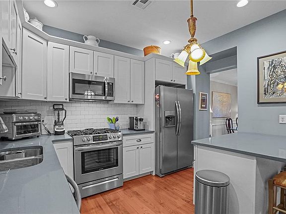 Welcome to this stylish and meticulously maintained condo located in the desirable Mount Hope neighborhood on Providence’s East Side. Situated on the first floor, this spacious unit offers two generously sized bedrooms and two full bathrooms. Gleaming hardwood floors flow throughout the open-concept layout, anchored by a sleek, modern eat-in kitchen featuring crisp white cabinetry, quartz countertops, stainless steel appliances, and a coordinating backsplash that ties it all together. The living room boasts oversized windows with deep sills, filling the space with natural light. Elegant touches like crown molding, wainscoting, soaring ceilings, and a marble gas fireplace add timeless character and charm. A dedicated dining area offers a great spot for hosting meals or enjoying casual dinners. Both bathrooms feature tiled showers and updated finishes with a clean, modern look. Additional perks include central air, in-unit laundry, an intercom system, two parking spots (including one in a heated garage), and access to building amenities like a gym, recreation room, and elevator. Conveniently located just minutes from downtown Providence, local dining, shopping, and public transit, this condo blends comfort, convenience, and contemporary style. Don’t miss your chance to see it!
