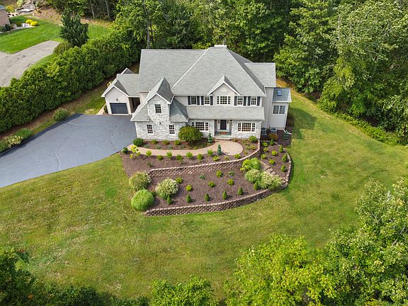 YES!!! You'll love this custom built Colonial situated at the end of a cul-de-sac with picturesque mountainside views. This 4 bedroom, 4.5 bathroom home with a 3-stall garage (1 unattached) will give you 4,000 Sq ft. of generous space to move about (without losing that quaint, cozy atmosphere when it comes time to cuddle by one of the two fireplaces with a book). An open-floor planned model boast an eat-in kitchen complete with granite counter tops, hardwood floors, double stainless steel sinks and a sizable island perfect for enjoying gourmet meals. With 240 Sq.ft. of space in the formal dining room and two living room areas, you can entertain your guests and even their guests. An office and sun room located on the main level are areas quietly situated for productivity or serenity. The master suite is crafted with amazing nine ft tray ceilings and wall-to-wall carpeting. It's master bath has tile flooring, double sink vanity, a walk-in closet, whirlpool tub, ceiling fans and a bench seat shower stall. Just around the corner from the master suite is the media room equipped with a fireplace and audio connectivity throughout the home. When you make your way to the lower level you will find the laundry room and a full length, fully finished family room. Located on the lower level is another family/rec. room with wall-to-wall carpeting and a full bathroom easily convertible as another bedroom. This property is only available to buyer who acts NOW. Stop reading and start calling!!