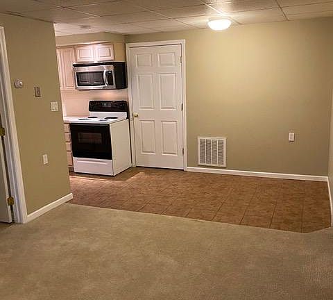 Galley kitchenWall to wall carpetingTile in kitchenPrivate entrance