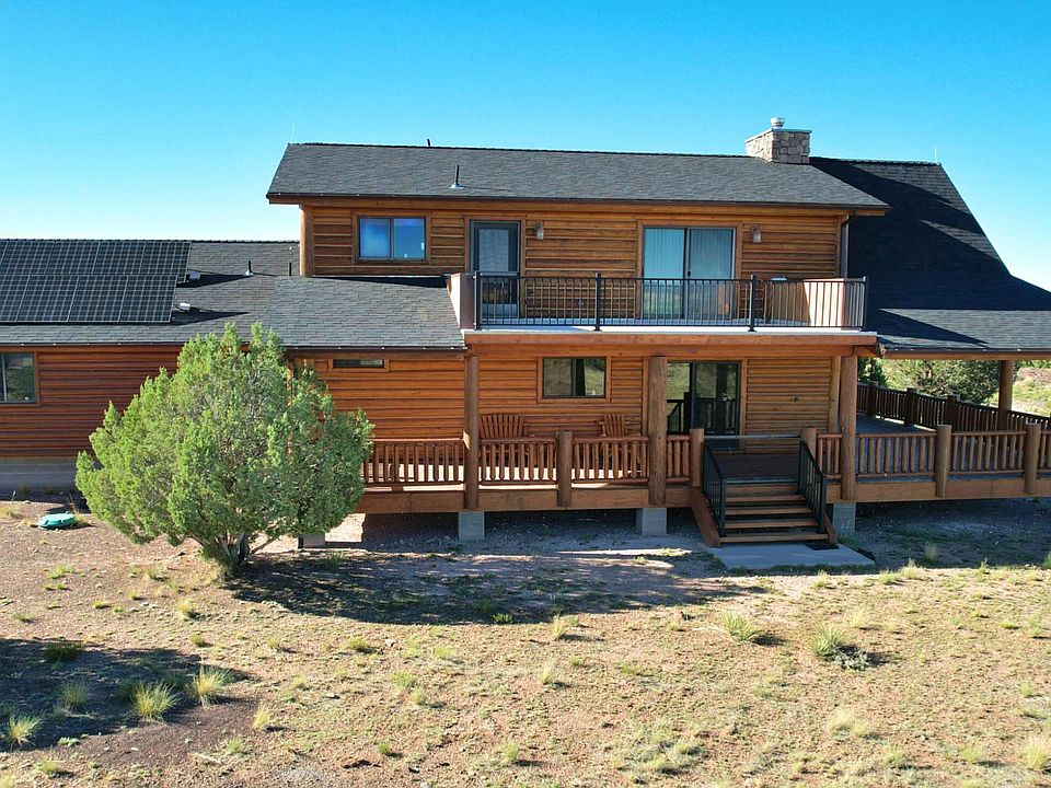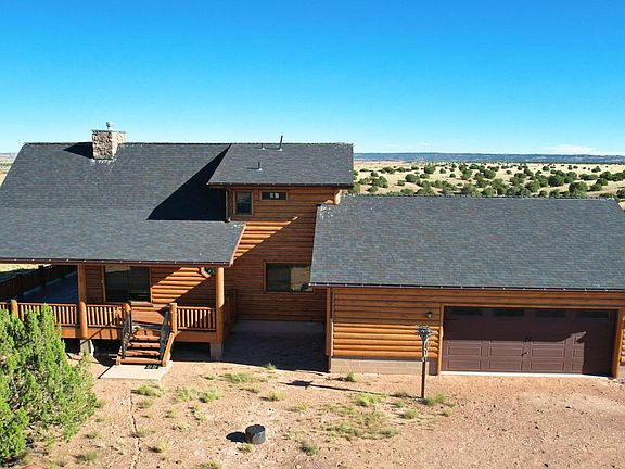 Beautiful 2BD/2BA, 1524 sq ft, log home on 38 ac bordering section (640 ac) of state land. Outstanding views perched up high w/great access, just off county maintained 5270 (Old Hunt) & Blue Diamond (5525). Off grid for those wanting the freedom & security of living sustainably. Private well into the Coconino Aquifer, providing good, abundant water (see docs for well info) New roof (shingle) w/warranty. Recently reconstructed decking/railing...home in great condition. 1700 gal underground water holding tank, 250 gal, underground, propane tank. All stainless appliances, granite counters Alder cabinets & new fridge. Lennox gas fireplace, comes furnished. 1000 sq ft of covered deck to enjoy the wonderful views from. Impressive log beams throughout, w/tongue & grove pine ceiling. 12 x 205... watt solar panels, 12 Rolls Surrette deep cycle batteries, Xantrex inverter & charge controller. Oversized 2 car garage w/lots of work space, w/interior room housing solar equipment, water heater & pressure tank. Upstairs deck w/master bd access & loft access w/more outstanding views. Whole log beams and walls are 2x6 studs w/half logs. Gas fireplace is thermostatically controlled & has several fan levels. Shed is set up as guest quarters & would make good storage or office. Feeling quite private & secure. Evidence proves Ravens like hanging out on the deck. Only 25 mi to Snowflake & approx 42 mi to Show Low.