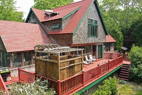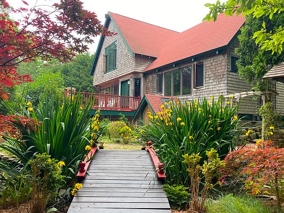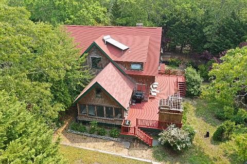A private magical setting. Enjoy your morning coffee overlooking a splendid Koi pond surrounded by mature trees, shrubs and perennials. Truly an oasis of nature. This location, on a quiet side street just off the Edgartown/West Tisbury road, is close to town, South Beach and Morning Glory Farm. A beautifully custom built Post and Beam home has been artfuly crafted with a variety of hardwoods and has two outbuildings tastefully set among the flowering trees. Central to the design is a breathtaking great room with 17 foot ceilings that opens to the dining and custom kitchen with cherry cabinets. The carefully designed kitchen flows effortlessly with a 4 burner Wolf stove, two built in ovens and a large walk in pantry. Summer entertaining could not get better in the large screened porch overlooking the beautiful grounds. The first floor offers a bedroom with full bath and laundry. Second floor features the main bedroom with a magnificent mission style window overlooking flowering trees. A fully finished lower level has a propane gas fireplace, wet bar, custom built ins and a full bath. Perfect for entertaining large gatherings. A 5 bedroom septic adds added value to the property. This is a rare opportunity to own a large lot close to town and beaches with great possibilities.