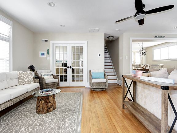 LOCATION, LOCATION, LOCATION! Just two blocks from the Margate Border, Ventnor Beach and Boardwalk! Old World Charm meets Modern Amenities! This 4-bedroom, 3 full bath home boasts gleaming original hardwood floors through out and is ready for new owners. Enter the cozy front porch and feel the summer breeze! The main level includes a large living area, upgraded kitchen with white shaker cabinets, Viking appliances, quartz counters, home office, full bath, and formal dining room—perfect for entertaining and making memories with family and friends. The second level features an oversized primary suite with a tiled shower and soaking tub, make up area, and private deck where you can enjoy your morning coffee or lounge around reading a good book. Three additional bedrooms provide plenty of space for guests, and the multiple full baths ensure comfort and convenience for all. Whether it’s a year-round residence, a summer getaway, or an investment opportunity, this home checks all the boxes. Low maintenance exterior, very little grass with pretty landscaping bed, detached garage and long driveway can accommodate three car off street parking. The two HVAC systems are newer condition, 3 years old. Located in the heart of Ventnor and within walking distance to restaurants, shopping, and entertainment, makes every day feel like vacation. Don’t miss your chance to live the shore lifestyle just steps from the sand! Owner relocating. Furniture is negotiable.