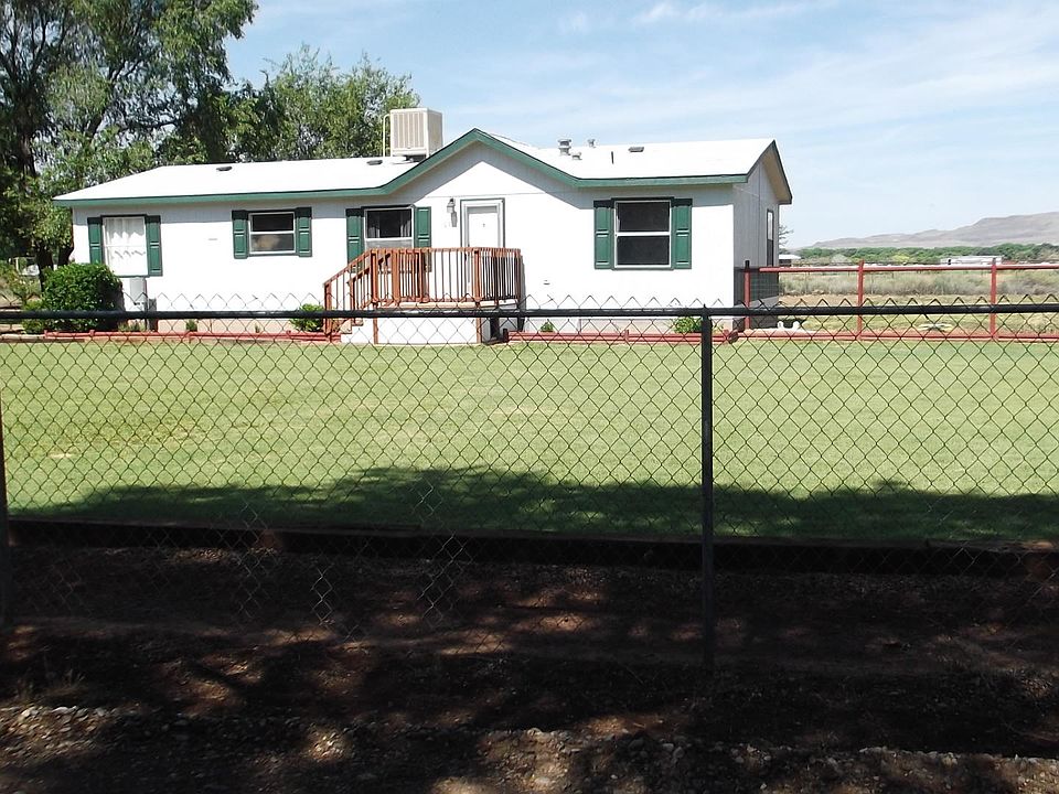 Very nice and well maintained Palm Harbor on 1 acre fenced lot with trees, on dead end road. recently remodeled 3 bedroom 2 bath. Storage shed and fenced dog pen. New water heater.