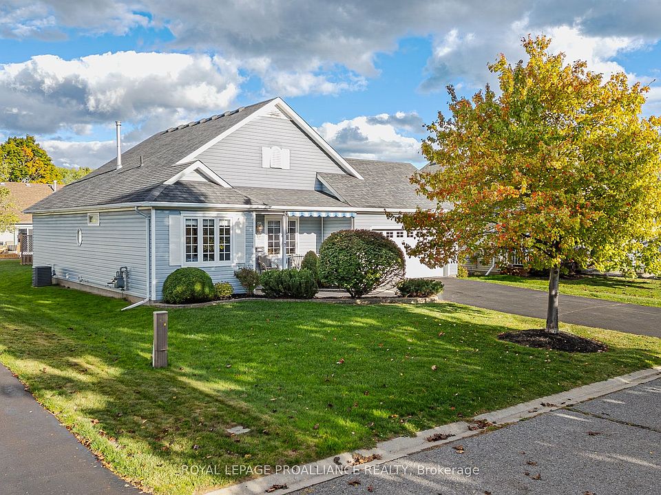 Brighton By The Bay stunner. This home has it all. 1470sqft on the main floor, part-finished bsmt for extra living space, dbl car garage & 4 season sunroom. 2 bdrm, 2 bath bungalow, offering a great layout & excellent condition. Walk up the interlock walkway to your front door with a covered front porch featuring composite decking & awning. Inside you will find a spare bedroom at the front of the house with an adjacent 3pc. bathroom offering full glass shower doors & stained glass transom window. Primary bdrm sits at the back of the house & offers gleaming cherry hdwd floors, spacious walk-in closet & private ensuite featuring a 12K walk-in jetted tub installed 2016. The main living area is great for entertaining boasting cherry hdwd, crown mouldings & an open concept dining & living rm areas. Living rm has a nat. gas fireplace & built-in white cabinetry. Off this space is a builder-finished 4 season sunroom with French doors, 3 walls of windows & a garden door leading to the back patio, BBQ area with gas hookup & nicely landscaped rear yard. The heart of the home is the spacious kitchen offering an additional eating area for day to day meals plus much more including: tile flooring, white cabinetry, coffee bar, pantry, dark granite counters, reverse osmosis drinking water by the sink & stainless steel appliances included. Main floor laundry/mudroom off the dbl garage leads to the full bsmt lvl, home to additional living space. 6ft 3in bsmt has a rec rm, games area & utility/storage area offering shelving, workbench & more. Other features incl: Full house 8KW generator (10K), C/vac, gas furnace, C/Air, Water softener, HRV Air Exchanger, BELL FIBE internet & professional basement waterproofing. Outside has an attached dbl garage that is insulated & drywalled, paved parking for 4 vehicles, maint-free vinyl siding, in-ground sprinkler system & architectural roof shingles. Adult subdivision offers a community centre & weekly events. Association fee $485/yr.