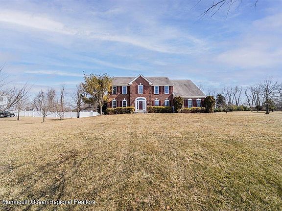 So much room offered by this 2 Story Colonial in the heart of Cream Ridge. Gourmet kitchen with granite counters, 42 cabinets, recessed lights. New stainless steel refrigerator. Extended sun room with sliding doors to paved patio. Spacious family room with gas fireplace. 1 Bedroom with tray ceiling and double closets, and full bath on main level. All bedrooms very spacious. Main bedroom with tray ceiling, 2 walk-in closets and full bath with jetted tub, enclosed toilet, shower, double sinks and skylight. 3 Car side entry garage. Full finished basement with walk-out bilco doors, full bath. Central vac and 21 zone sprinklers all around as per owner. Inbuilt speakers all around home except 2 bedrooms. Showings start March 19th.