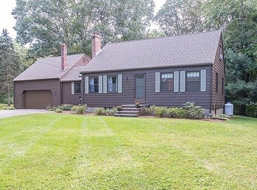 Close to it all yet a world away! This timeless and appealing expanded Cape is perfectly situated in a quiet cul-de-sac neighborhood with access to walking trails, yet is moments to major routes and fantastic amenities! We love the spacious family room (often missing in a Cape style home) with vaulted wood ceilings, a woodstove, and great access to the deck and private yard beyond. The dining room has a pretty wood-burning fireplace. Desirable option for first floor master, with 2 bedrooms and a full bath on the main floor. 2 more extremely spacious bedrooms and an updated bathroom are found upstairs. The oversized 2 car garage with steel beam is another excellent feature - and how nice to see the walk-up access to the 23 x 18 storage space above; future expansion possibilities or just enjoy ease of storage. Important updates include heating system, oil tank, many Pella and Harvey windows, refinished hardwood floors, fresh paint, landscaping and more. You can host Thanksgiving here!