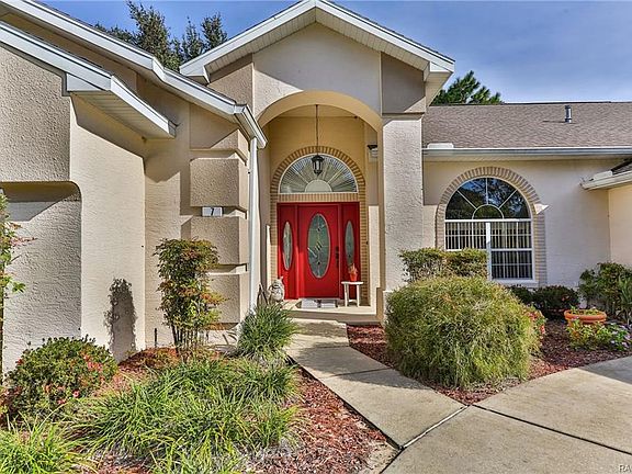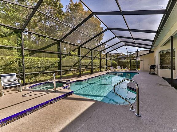 We invite you into this beautiful custom home in the Enclave at Sugarmill Woods. The home was built by the current owners in 2000 and they've lived there since. The home features a large private built-in pool and hot tub under screen enclosure with spacious covered lanai and pool bathroom at the back of the home. The pool area can be accessed through the living room, master bedroom, breakfast nook, or the back bedroom. Enjoy the outdoor shower, tv connections, and propane hook-up for your grill when entertaining friends and family. The large living room with built-in shelving and fireplace has high cathedral ceilings and is open to the kitchen and dining areas. The master bedroom is large with tray ceilings and features two large walk-in closets about a master bathroom about as big as they come.