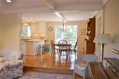 Wonderful Seaview neighborhood in Brewster on the Orleans line is just steps from the bike trail. Nicely thought out single floor living offers 3 bedrooms & 2 baths w/ open kitchen & dining area. Pretty step down living room w/ fireplace & recessed lighting. The Kitchen & Baths have been remodeled w/ higher end finishes. Deck perfect for entertaining offers privacy & a very tranquil setting. Master bedroom w/ slider leading to the deck. 1st floor laundry. Wood fls. Gas heat. Garage. Great house!