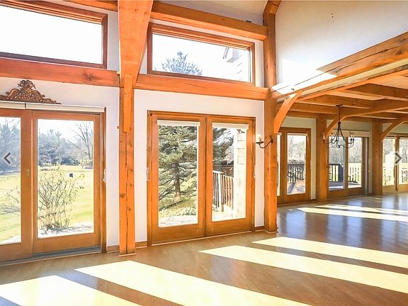 Elegant post-and-beam contemporary tucked away in a serene, private setting. The light-filled open floor plan is anchored by a dramatic two-story fireplace, flowing seamlessly into an expansive eat-in kitchen and dining area with picturesque views of the landscape. Featured on the cover of Country Living Magazine's 1997 House of the Year, this residence embodies timeless sophistication and classic New England charm. The first-floor primary suite offers a private balcony and spa-inspired bath. Upstairs, a spacious family room, additional bedrooms, and a full bath provide both comfort and flexibility. Radiant heat, mini-split systems, and multiple stoves ensure year-round comfort. Walk-out basement and oversize garage offer generous storage. Water and snow plowing included. Tenant responsible for trash ($50/month) and lawn care.