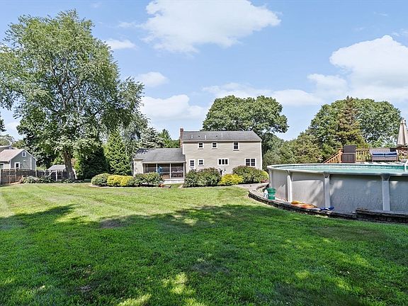 This 4 bedroom, 2.5 bath colonial with 2-car garage is nestled in the Heritage Hill Golf Course and Back Nine Club neighborhood. It features hardwood floors throughout except for ceramic tile in all baths and wall-to-wall carpet in master and finished basement. Kitchen is upgraded with granite counters, double wall over and island. This spacious home offers lots of room for everyone, with plenty of closets, and open and airy entryway and upstairs hallway. The finished basement gives you an enormous room for gatherings, hobbies, play room, gym or anything your heart desires. The house is set off the street with an amazing backyard you can enjoy from your screen-in porch off of the back deck. Additional deck off of the pool allows for relaxation between swims! Other features include central a/c and generator hookup. This location is convenient to the highway, the local schools, shopping, & 10 minutes to the MBTA Commuter Rail! Don't miss this one! Showings deferred to OH 8/9 11-1pm.