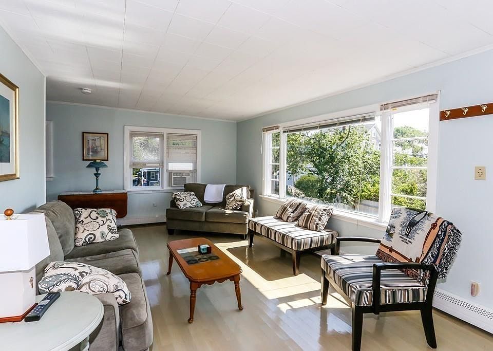 Nestled between Good Harbor and Long Beaches on Brier Neck, you'll find the "1/2 Way Café," a charming year-round Cottage with ocean views. This sunny home features high ceilings and pickled oak floors on the main level that consists of 2 bedrooms and a full bath, an eat-in kitchen with dining area and pantry, and a fireplaced living room with picture window to take in the views. Offering a fantastic roof top deck and an outdoor shower on the upper level, this home has a lower level with high ceilings, washer/dryer hookup, and a ¾ bath that can be transformed into additional living space. Set on a good-sized lot, this property has a substantial footprint allowing for great expansion potential. No hassle city water/sewer. Your choice to renovate or keep cute as is!