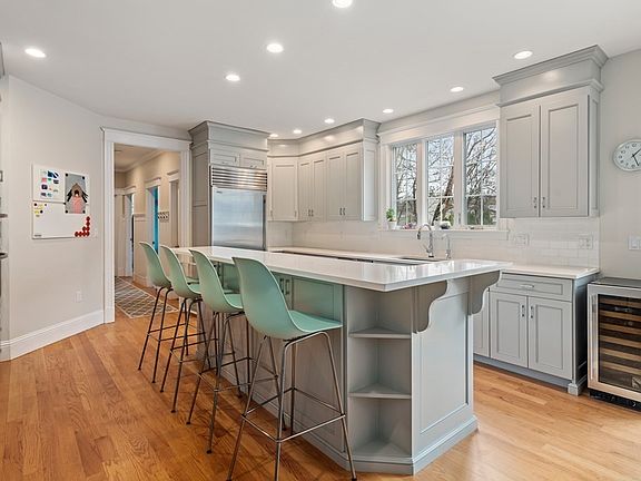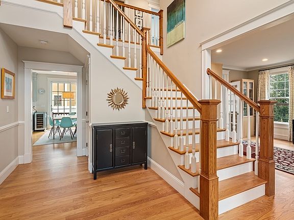 As you step into 7 Parker Terrace, you are instantly greeted by the grandeur of a double height foyer that exudes elegance and warmth. Built in 2009, this beautiful center entrance colonial boasts a complete kitchen renovation in 2018. Bright and open with top of the line appliances, island seating, and plentiful storage. A casual eat-in area opens to a comfortable, fireplaced living room. A formal dining room and a den with french doors, plus a pretty powder room and fantastic mud-room/storage directly off of the 2 car garage, which has an EV charger.The second floor features 5 bedrooms and three full baths, including a luxurious primary suite with walk-in closet and spa-like bath.The lower level hosts a family room, bedroom with an ensuite bath, and a gym/or media room. Back up generator, hydro air heating, new boiler (2021), whole house ethernet. Located in Newton Centre, this home is just minutes away from world-class shopping, dining, and schools.