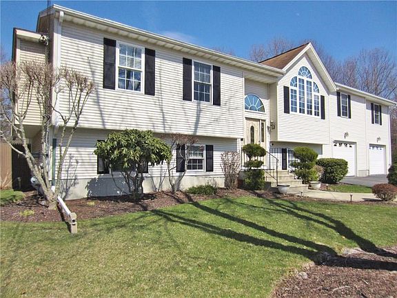 Gorgeous Tri Level with Over 2,800 Sq. Ft of Living Area Nestled in a Cul-de-sac on a Beautifully Manicured .45 Acre Lot with Underground Sprinklers! Open Floor Plan with Cathedral Ceilings & Sky Lights! Home Boasts a Beautiful Center Island Kitchen with Stainless Steel Appliances! Formal Living & Dining Room with Hardwood Floors! Bathroom has a Double Sink Vanity, Stand-up Shower and Corner Style Whirlpool Tub! Big Master Bedroom & Office! Lower Boasts a Huge Family/Entertainment Room with a Gas Fireplace, Bar, Full Bath, Additional Bed Room & Laundry/Snack Bar Room! Possible In-Law! Central Air, Gas Stove, Heat & Hot Water! Vinyl Siding, 2 Car Garage, Shed with Roll-up Door, Deck, Cement Patio & Hot Tub! All Wired for Generator! Also it's all set up for an Above Ground Pool! Minutes to Route 95 & Center of Town, A MUST SEE! Subject to Seller Finding Suitable Housing.