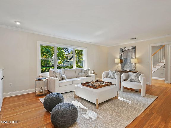 In Old Greenwich, ideally located in one of the area's most desirable neighborhoods, this charming Colonial sits on a .68-acre lot at the end of a peaceful cul-de-sac. It offers a perfect blend of timeless character and exciting potential. A gracious layout is enhanced by oversized windows and open spaces that flood the home with natural light. The main level features generous formal living and dining rooms, each with its own fireplace. A modern kitchen with center island connects seamlessly to the adjoining family room, which opens onto a spacious deck. Upstairs are four bedrooms, including a primary suite with an en-suite bath. The finished lower level includes a recreation area, full bath, and laundry. The expansive backyard adds even more appeal. The lot is sub dividable, offering flexibility to expand or invest. Convenient to the village, schools, shops, and train.