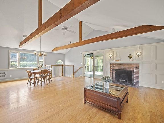 - Features: Cathedral Ceiling(s), Ceiling Fan(s), Beamed Ceilings, Flooring - Hardwood, Window(s) - Picture, Cable Hookup, Exterior Access, Open Floorplan, Slider, Wainscoting, Lighting - Overhead, Window Seat