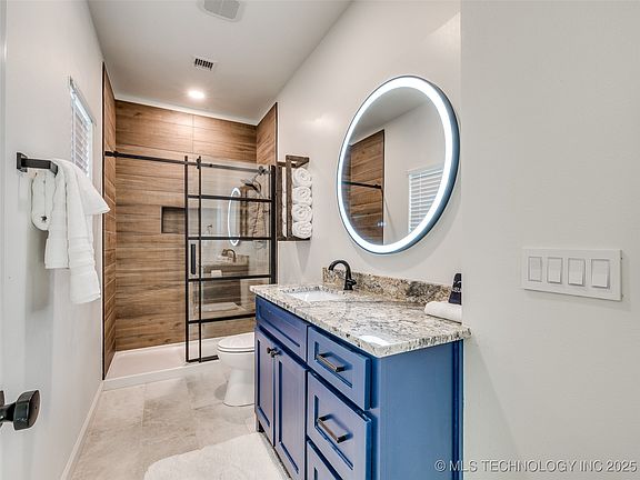 Walk-in showerSplit bedroom floorplanOpen kitchen conceptVinyl floorsTile in bathroomsBlack stainless appliancesWalk-in pantry