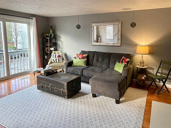 Loads of Upgrades!! You will love all the updates in this well maintained townhouse. A large living room opens into the kitchen/dining space creating a nice flow--perfect for entertaining. The first floor boasts engineered hardwood floors, new kitchen cabinets and granite counters. Both the living room and dining room have sliders for great airflow. Dining room opens out to deck for extended living space. Two good-sized bedrooms with nearly new carpet and ample closet space for a condo. The ground floor has a one car garage, 1/2 bath with laundry and a storage room with walkout (which could be finished) open onto a private patio. Hydro air heating system provide heat, hot water and A/C. Close to everything! Easy access to exit 7 or 8 for shopping, dining and commuting. Move in ready!