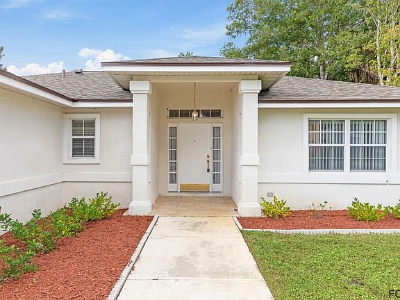 Great value on this move-in condition, 3/2/2 split floor plan in the heart of Palm Coast. BRAND NEW roof and an AC from 2017 along with a security system provides peace of mind as a new owner for years to come. This open and split floor plan home has 1,344 sq ft, high ceilings, laminate and tile in the living areas and carpet in the bedrooms. Sliders from the dining area lead to the enclosed and screened-in rear porch overlooking the spacious backyard with plenty of room for a pool. Master suite has double vanities and a walk-in shower while the guest rooms all have their own walk-in closets. Indoor laundry is right off of the kitchen and the garage. Home is centrally located and just minutes from; shopping, schools, places of worship, restaurants, swim and racquet club and the beach is just a short 10-15 minute drive! Come take a look today!