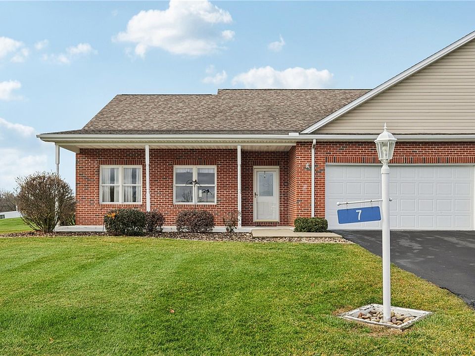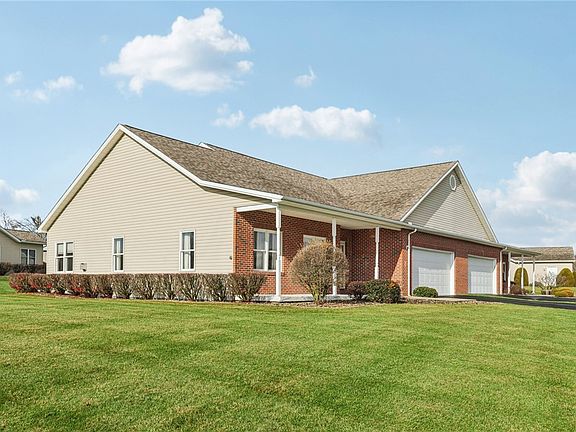 Experience move-in ready, maintenance-free living in this desirable corner-unit condo in Wynfield Commons. Offering over 1,800 sq ft of comfortable living space, this brick and vinyl condo features a freshly painted main level and neutral flooring throughout. A sun-infused sunroom adds warmth and brightness, while the entertainment-friendly great room is anchored by a charming corner fireplace. The private primary suite offers a spacious walk-in closet and full bathroom. A guest bath and convenient main-level laundry complete the first floor. The upper level provides an ideal guest retreat with an oversized bedroom, generous closet, and en-suite bathroom. Living space continues into the partially finished basement, showcasing a game room, full bath, and abundant unfinished storage. An attached 2-car garage, also freshly painted, adds everyday convenience. Located minutes from I-376 and Westminster College, making this the perfect blend of comfort, convenience, and care-free living.