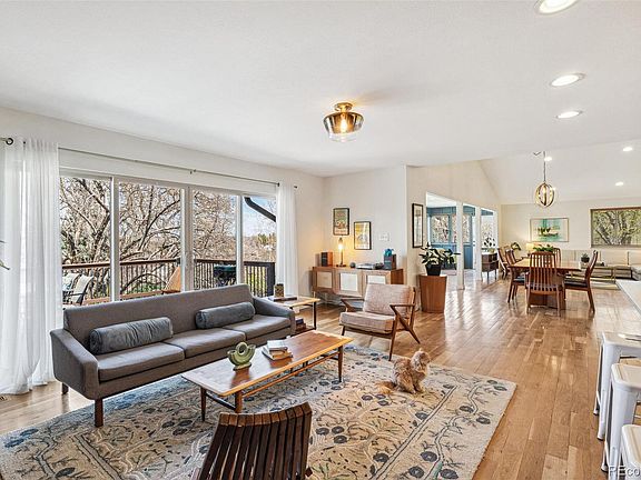 City West Real Estate is proud to bring to market 7 Rangeview Circle, an updated 3,000 square foot residence in the much sought after Paramount Heights neighborhood. This custom 1967 home has been updated throughout yet still maintains its mid century charm. Upon entering you'll step into an expansive great room that includes the living room, dining room, kitchen, den, and sunroom. From anywhere in this almost 50 foot wide space you'll be treated to breathtaking views. Down the hallway you'll find the nicely sized guest bedroom with two closets and its own access to the hall bath. At the end of the hall, the primary suite features a walk in closet, a 3/4 bath with Italian quartz tile, and a custom vanity with solid walnut drawer fronts. Head downstairs to the walk out basement and you'll find the spacious laundry room, 2 more bedrooms, and a recently completed theatre room. Other standout features include custom mahogany kitchen cabinetry, vaulted ceilings, workout room, South facing driveway, white oak flooring, and an oversized and heated two car garage with a dedicated EV charging circuit. The Paramount Heights enclave is known for its mid century vibes, large lots, and great views. This home is situated in a prime location within the neighborhood, far away from the noise of Kipling, and is located in a large, secluded cul-de-sac. Perhaps best of all, you have a creek in your back yard. Any time spent on either of the decks will reward you with views of the local wildlife: ducks, deer, foxes, owls, and hawks are common visitors. Don't miss this opportunity to live in one of the best spots in all of Wheat Ridge.