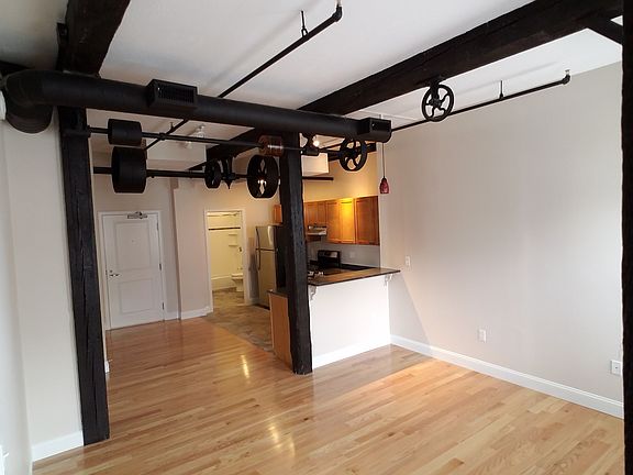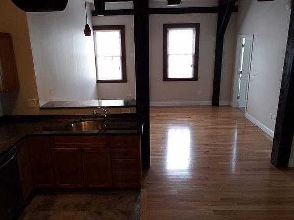 This 2 bedroom, 1 bath, 2nd floor walkup blends historic charm with contemporary style. Set in a repurposed 1800s manufacturing building, the space boasts high ceilings and exposed brick and wood that give character and warmth. The spacious bedroom offers plenty of room to unwind, while the updated, open-concept kitchen features granite countertops and stainless-steel appliances all set in an inviting layout. Hardwood floors flow through the living room, tile adds a clean touch in the kitchen and ample bath, and carpeting in the bedroom makes for a cozy retreat at the end of the day.