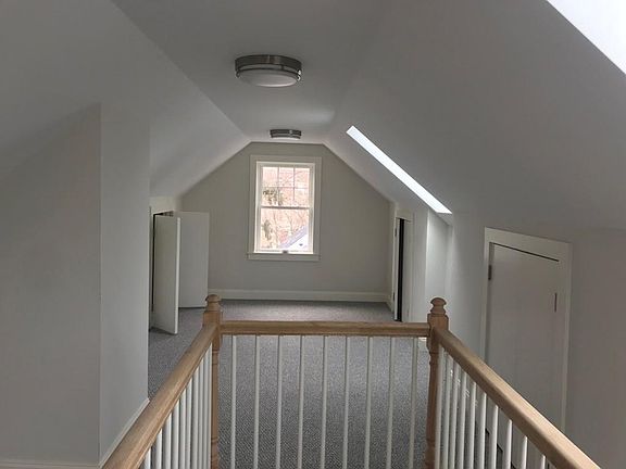 This stunning antique farmhouse has been completely renovated. The two story unit has a gracious entryway which serves a great mud room and storage. The unit features 2 large bedrooms and a walk up 3rd floor with skylights, this is a great space for home office, gym or bonus room. The kitchen is light and bright with NEW stainless steel appliances, brand new white cabinets with granite counters. The bathroom was gutted and completely redone (tile,tub,plumbing). The home also features new siding, new window, new insulation. This unit has basement storage, laundry, and a great private 2 car garage