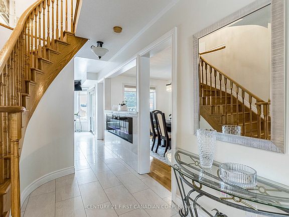 This stunning two-story all-brick home, located on a quiet street in a peaceful community, is filled with natural light and spacious living areas. Tastefully designed and move-in ready, the home welcomes you with double glass front doors that lead to an elegant grand foyer with a round solid wood staircase and glamorous lighting. The main floor is perfect for entertaining, featuring a kitchen with granite countertops, matching backsplash, and stainless steel appliances. The breakfast area, with an island, a bay window, and a walkout, offers beautiful views of the surrounding fields, while the dining room, complete with a gas fireplace and chandelier, creates an inviting atmosphere. A convenient main-floor laundry room with barn doors leads to the attached double-car garage. Upstairs, you'll find four generously sized bedrooms, including a primary suite with a newly renovated ensuite and walk-in closet. The updated main bathroom features a stylish barn door. The fully finished basement, accessible through the elegant leaded glass door and past the stone feature wall, includes engineered wood flooring, a bar, an exercise area, a pool table, a sitting area with a fireplace, a cold room, and lots of storage. The beautifully landscaped backyard is an ideal retreat, featuring a newly redone deck, metal pergola, and stunning views of farmland. Conveniently located between Toronto and Barrie, this home combines serenity with easy access to local and city amenities. Thoughtfully designed and full of luxurious features, it is a must-see!