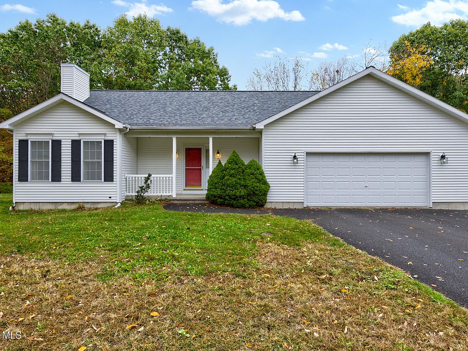 Beautiful three-bedroom ranch with 2 full bathrooms, offering comfortable single-level living in a tranquil setting. The open concept floorplan features a spacious kitchen that flows seamlessly into the dining and living areas—perfect for entertaining or everyday living. A large deck overlooks the peaceful, wooded lot, creating a private backyard retreat. Enjoy cozy evenings by the gas fireplace in the living room. Additional highlights include a convenient first-floor laundry room, a two-car garage with extra storage, and a brand-new roof (2025). A wonderful opportunity to own a move-in ready home in a serene location!