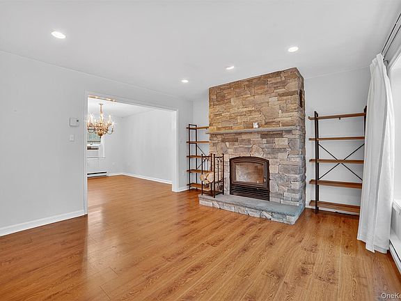 Welcome to this beautifully updated and well-maintained home situated on a serene lot. This move-in-ready home offers a perfect blend of style and functionality, featuring sun-filled living and dining areas with elegant wood-look flooring that create a warm and inviting flow throughout the main level. The upgraded eat in kitchen features sliding doors opening to an oversized trek deck overlooking a peaceful, park-like backyard -ideal for entertaining and everyday enjoyment. The upper level boasts a generous primary suite with a walk-in closet and renovated full bath and sliders out to the oversized deck, along with two additional bedrooms and an upgraded hall bath. The bright and spacious living areas flow seamlessly throughout the first floor, while the finished lower level provides versatile space for a home office, gym, recreation room or media room. Above all this home is conveniently located and close to parkways, golf course, town shopping, restaurants, schools, major shopping, parks, walking trails and just a few minutes to the train station.