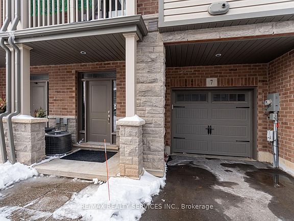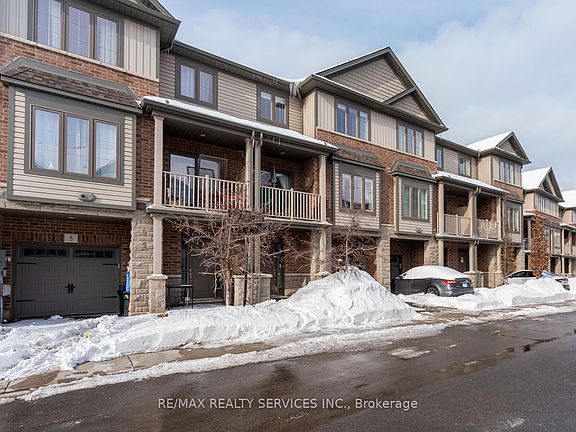 Stunning 3-storey condo townhome in the highly desirable Waterdown community offering 3+1 bedrooms, 3.5 washrooms, 2,151 sq ft of living space, and just 7 years new. This elegant brick and stone home features a spacious foyer leading to a private main-level bedroom with a full washroom, ideal for guests, in-laws, or a home office. The chef's kitchen boasts a central island, stainless steel appliances, stylish backsplash, and ample cabinetry, flowing seamlessly into a bright open-concept great room with laminate flooring, 9-ft ceilings, pot lights, and space for a large dining table-perfect for entertaining. Step out onto the generous balcony for relaxation and fresh air. The third floor offers three spacious bedrooms, two full washrooms, and a convenient laundry area. A fantastic opportunity for first-time home buyers to own a modern, move-in-ready home in one of Waterdown's most sought-after neighborhoods-don't miss out!