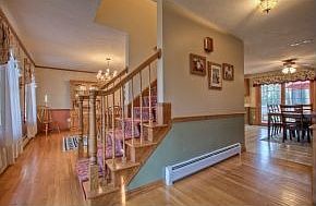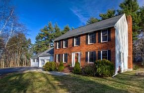 Single Family Home for sale by owner in New Boston, NH 03070. This stately brick front colonial is a gateway property to one of New Boston's most desirable neighborhoods with an oversized third garage and a large, level lawn for the children to play. The spacious eat-in kitchen has new stainless steel appliances, including a dual fuel Jenn- Air range, a large pantry and a slider to a sunny deck. There are two family rooms, one with hearth and energy efficient pellet stove. The bedrooms are large, the master with a walk-in closet and double-sink master bath. You will also find a nice hardwood floor, a mudroom with half bath off of kitchen and comfortable central air cooling. With a generator hook-up, full size open basement and a second walk-in attic this wonderful, livable home is move-in ready. New Boston is a fun, engaging town with just the right sense of community. The New Boston Elementary School won the 2003 School of Excellence Award and in 2011 recognized by Governor for highly integrated arts and aca