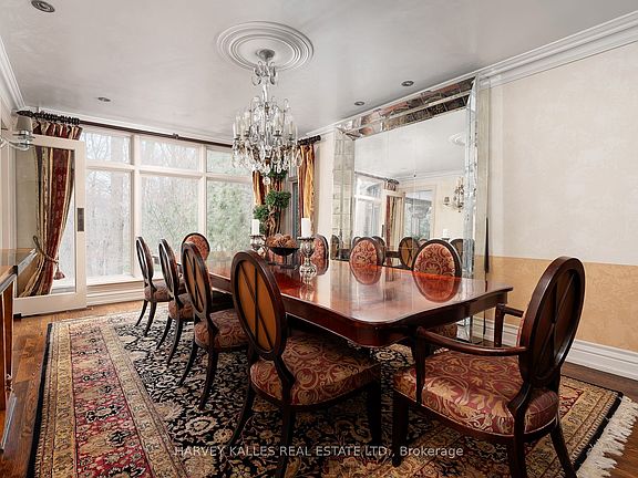 This expansive, four +2, bedroom home, sits on a rare and immense 61' x 252.5' ravine lot, minutes from the city's finest amenities. This Forest Hill home features interiors curated by Eric McLelland of Fleurs d'Lis Design. Defined by soaring 10-foot ceilings, the home showcases unique, high-end finishes, including Venetian Glass Panels, Mother of Pearl accents & silk upholstered walls to name a few. The expansive layout includes a versatile finished attic space and a spectacular finished basement with a nanny live-in unit, multiple walkouts to the ravine and expansive patio area with water feature, a large glassed in sunroom with in-floor heating, as well as an indoor gym, sauna & hot tub. Plus, a significant three level back extension maximizes this home's living space & is complemented by a 2021-installed elevator that services all levels but the attic/third level for ultimate convenience. 7 Ridgewood Road is an architectural statement in a highly sought-after Toronto location.