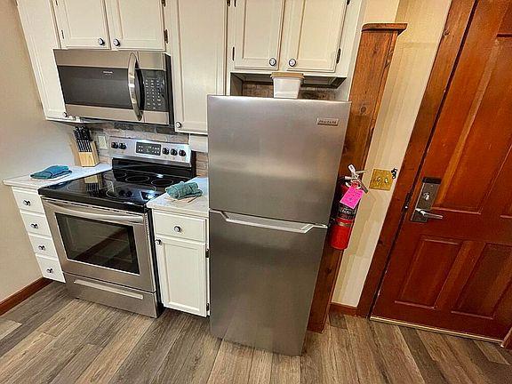 Sunset views from this 1 bedroom, 1 bath, fully furnished resort property. New quartz counter tops, appliances, lighting, flooring, freshly painted including cabinets. Nice deck furniture to enjoy the views. Rimfire is in the heart of the Village with fitness room, hot tubs and underground parking. Slopes are right across the plaza. 526 sq/ft (Casa)