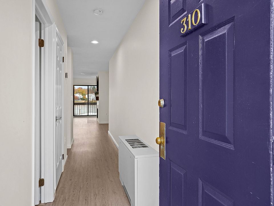Discover waterfront charm at 7 River Road, Unit 310 in Cos Cob. This inviting condo offers stunning water views from a sun-filled living area featuring expansive windows, a beautiful fireplace, and direct access to a private balcony. The first floor includes a convenient in-unit washer and dryer and a modern kitchen with new appliances. Upstairs, two bright bedrooms boast vaulted ceilings and skylights, with one offering access to a second balcony. Ample storage includes two assigned parking spaces and additional garage storage. Experience all that Cos Cob has to offer!