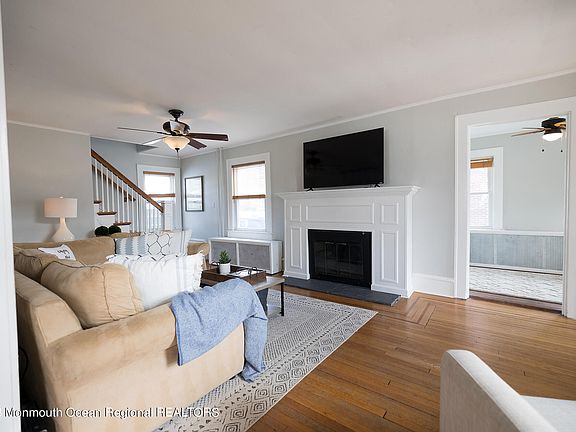 Home sweet home! Feel the love when you walk into this charming colonial in desirable Oceanport. Delightful neighborhood where children safely play on the dead end street and run from house to house. Kitchen has been updated with new countertops, white cabinetry and new appliances. Bathroom remodel includes handsome double vanity with marble counter top, tile flooring and fresh white subway tile. Features include beautiful, inlaid, hardwood floors and a wood burning fireplace with custom mantel. Second floor has 3 generously sized bedrooms and gleaming hardwood floors. Bonus 3rd floor flex space with gas fireplace can be whatever you need it to be-bedroom, home office, play room or teen hangout. The fenced in backyard has a paver patio, raised garden bed and backs up to green acres making the yard feel extra large and oh so tranquil. Full basement & 2 car garage. Centrally located near local shopping, restaurants, Jersey Shore beaches, parks and easy access to NYC.
