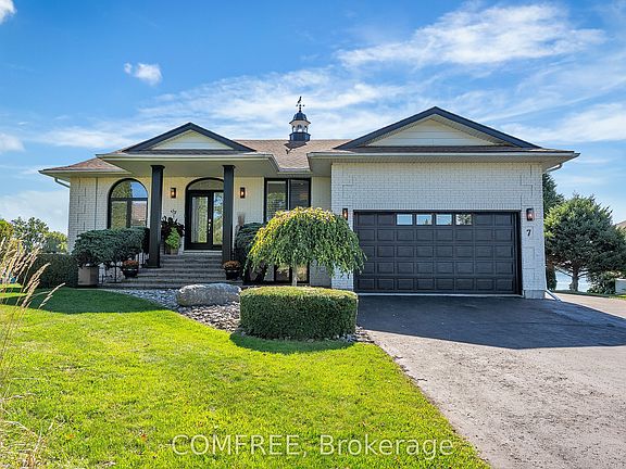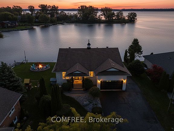 Welcome to your lakeside escape with this stunning southern exposure waterfront home that sits at the end of a quiet cul-de-sac in the town of Brighton, on a protective cove of Presquille Bay with an incredible 175 ft of waterfront. This property is a rare opportunity of both sheltered waters for docking and kayaking, complete with a Seadoo/kayak lift, as well as the open-water adventures awaiting nearby on Lake Ontario. With the benefit of Brightons charming downtown a mere 5 minutes away and full municipal services, this waterfront location is rare. Wall to wall french doors along the entire length of the home provides natural light and sweeping breathtaking views of Presquille Bay. The home features vaulted beamed ceilings, a main floor open-concept layout, a 50 ft covered deck complete with hot tub, a gourmet kitchen that boasts granite counters, a 9-ft island, gas cooktop, heated floors and Sub-Zero fridge. Centered between the dining space and great room and kitchen is a magnificent floor -to-ceiling stone fireplace. The luxe primary suite offers a fireplace, walk-in closet with laundry, and walkout to the hot tub. A study or 2nd bedroom is located off the front foyer. The bright finished walkout basement offers excellent potential for an in-law suite or separate apartment, with its large windows also overlooking the Bay. The lower level has a 4 pc bath, rec room, two bedrooms, and a hobby room/gym with plumbing and patio doors to a second outdoor bricked patio area. The property offers plenty of storage options with an attic above the garage and an expansive enclosed shed under the main deck. The driveway accommodates up to 6 vehicles plus an RV/boat pad. No worries about power outages as there is a hard wired natural gas generator.