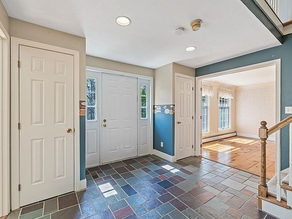 Well maintained 4-bedroom garrison style colonial with over 4,300 above grade square feet, 3 stories and potential for 2 bonus bedrooms. Welcoming foyer leading to a bright kitchen with a peninsula countertop for seating, an abundant number of cabinets and two beautiful bay windows with a convenient mudroom connecting to the garage. Off the kitchen is a classic formal dining room with crown molding and a large family room with a pellet stove leading to an oversized sunroom. Also on the first floor is an additional room that could be used as a formal office with built ins and access to the sunroom. A formal living room space off the foyer and a three-quarter bathroom with a convenient exterior door, perfect for entertaining. On the second floor is the impressive primary suite with an ensuite bathroom featuring a double vanity and large tile shower, a walk-in closet and a cathedral ceiling balcony with potential for a two-story bedroom. Three more sizeable bedrooms, a full bathroom, a laundry closet and an over 200sqft unfinished bonus room. The third floor offers all new skylights and two additional rooms with large closets that could be used as extra bedrooms. Large basement with Generac generator hookup and whole house generator, central AC on the first floor, new roof, newer 4-bedroom septic and leach field, recently painted siding, a 3-car attached garage, a multi-level back deck with a fully fenced in backyard all situated on a private 2acre lot at the end of a cul-de-sac