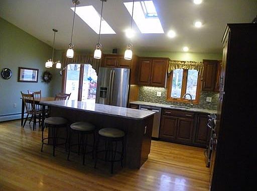 Beautiful Contemporary HUGE 3 Bedroom Home is waiting for you! Pride in ownership is evident throughout! Lovely open concept kitchen and living area! Stainless steel appliances, Cherry custom cabinets, granite counters, glass mother of pearl backsplash, large Island, recessed lighting and skylights! Hardwood flooring throughout. Formal Dining room. Large and inviting living room with fireplace. Walk up a few steps to the Master suite, two bedrooms and another full bathroom. Finished basement family room with 1/2 bath & exterior door. Central AC. 2 bay garage. Automatic switch generator. New roof 2006. New Harvey windows in 2013. In ground sprinkler system! So much more! Step out onto the large deck and peaceful wooded yard for many social gatherings to come. If the sun is too warm open the retractable awning and enjoy your morning coffee or afternoon iced tea! 1st showings at Open House Saturday April 27th 10am-12pm.