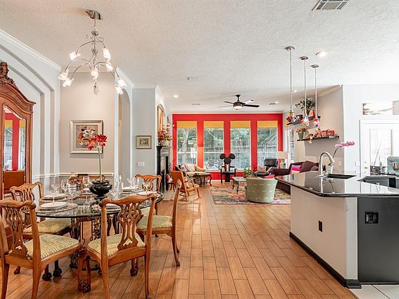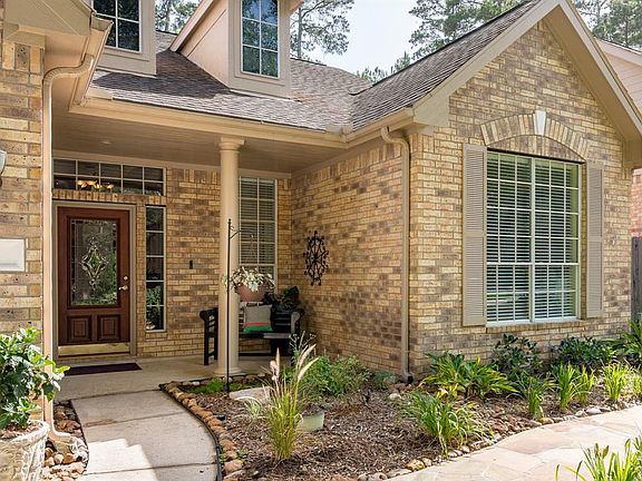 Updated home in the 55+ patio home community of Ashley Greens. Located at the end of a private cul-de-sac with no rear neighbors this popular Berkshire plan features a welcoming front porch. Enter into a light-filled foyer which leads into an open Living and Dining area with renovated Kitchen featuring massive granite island, glass front upper cabinets, mosaic backsplash and newer stainless steel appliances. Split plan with large private primary suite overlooking the back garden and two secondary bedrooms off the foyer with a renovated guest bath with direct access to one of the bedrooms. Adorable garden with covered patio, hardscape areas for lounging, putting green and flowering beds. Ashley Greens is unique in The Woodlands as it is the only 55+ single family neighborhood that is walking distance to a village center. The $135/month HOA fees include front lawn and sprinkler maintenance, mulching, gutter cleaning, house paint, front door staining, fencing, and basic alarm monitoring.